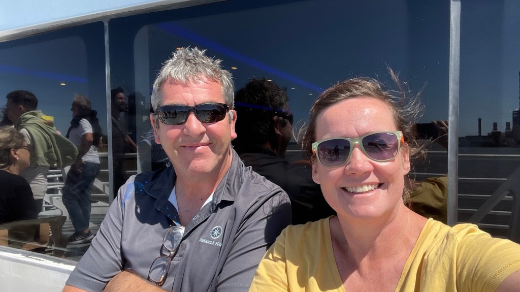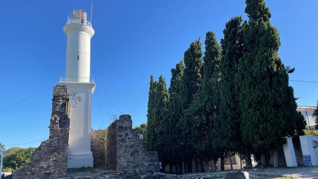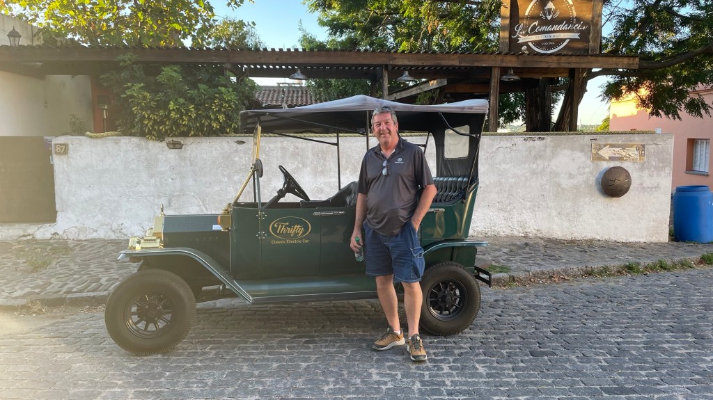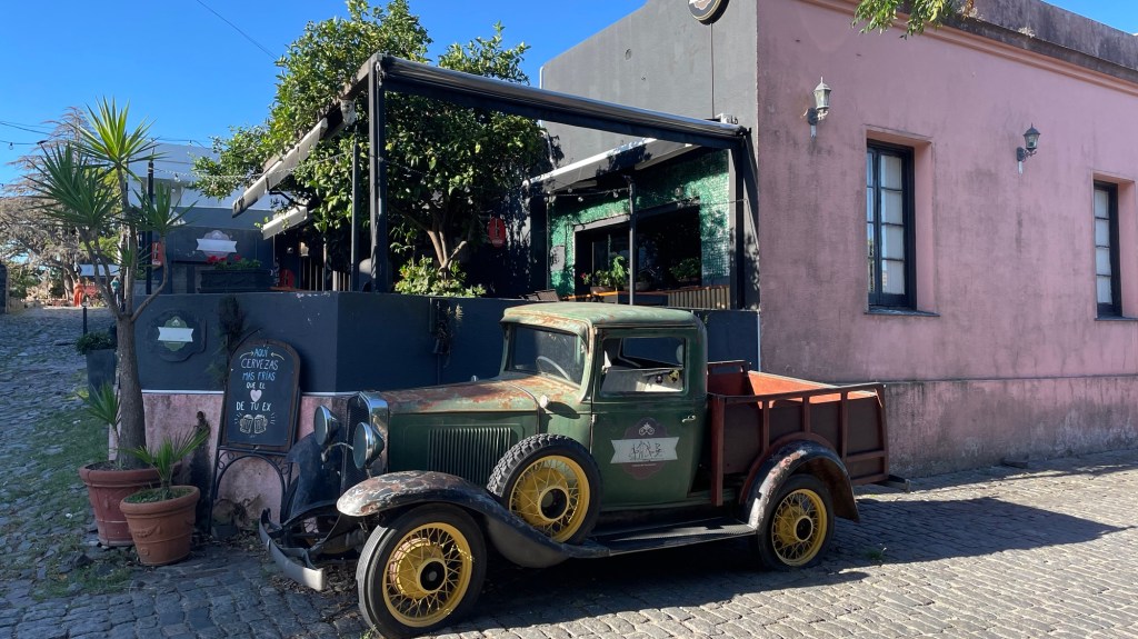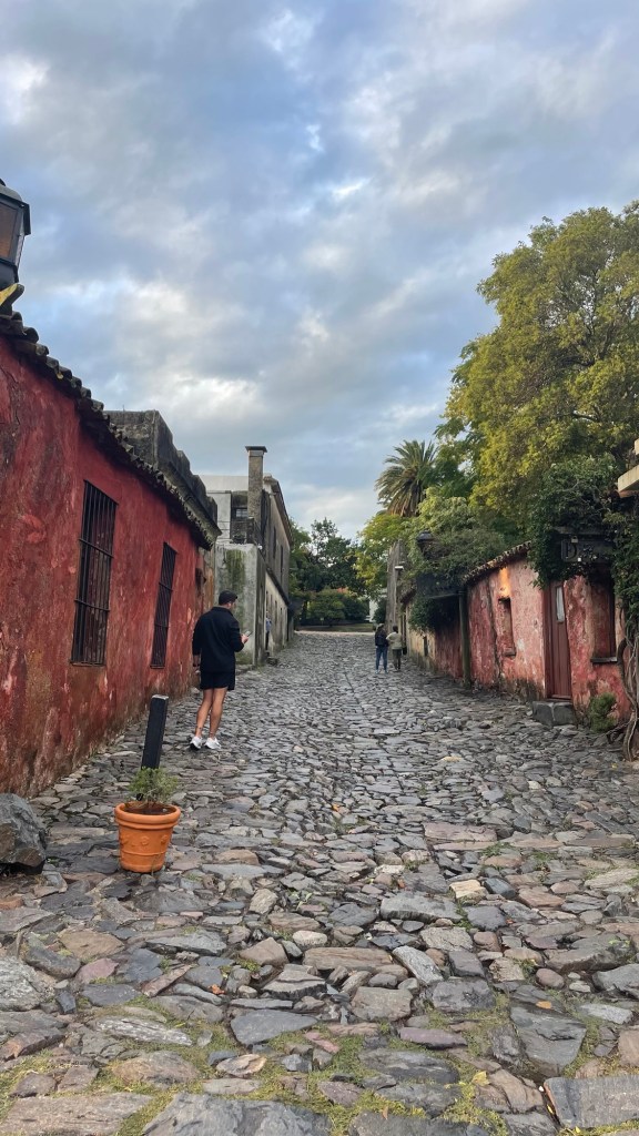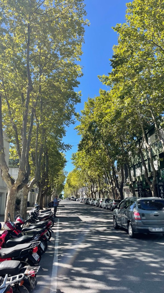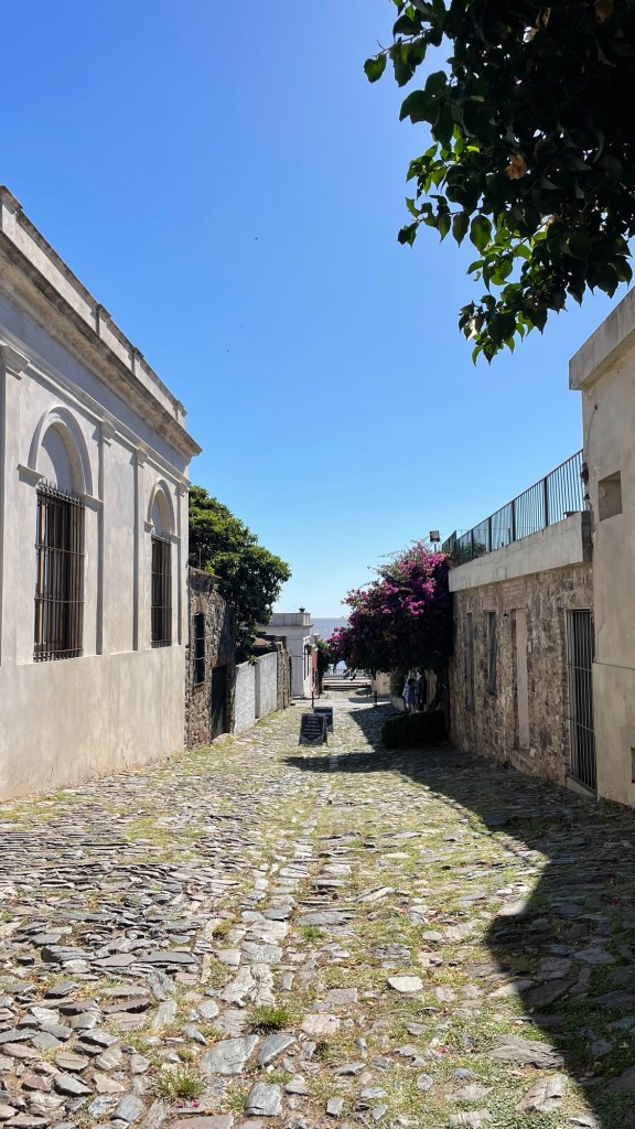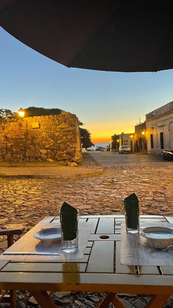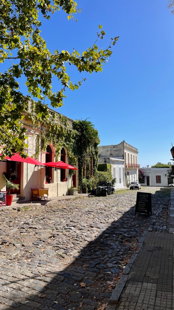 Our day started with a 5am 30min Uber trip to the airport in Mendoza, followed by a 1.45hr flight to Buenos Aires, 20min Uber to the ferry port and a 1.15hr ferry ride to Colonia de Sacramento in Uruguay. Sounds like a lot but it went without a hitch. Other than having to pay £100 each to rearrange the flights as I hadn’t fully appreciated that we needed to treat the ferry port like an airport in terms of arriving in plenty of time (90mins before the ferry leaves, in reality 60mins is fine in March). There are 2 ferry companies. One is meant to be better (Buquebus) than the other but we went with the better crossing time for us. This was with Colonia Express (the poorer cousin) but we thought it was good for a short crossing.