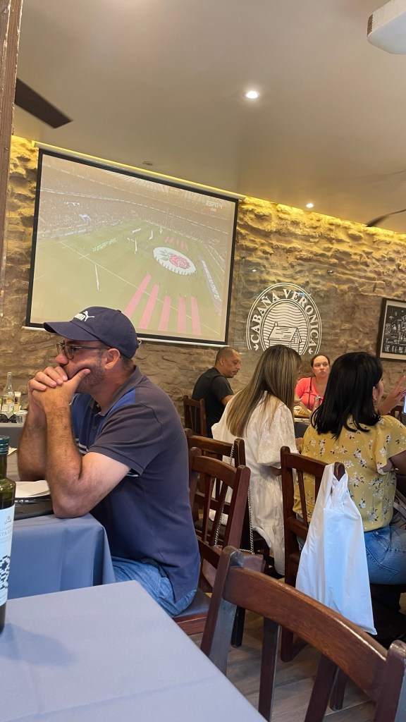 First port of call; it’s 20mins into the Wales vs France match when we arrive so we head for the only sports bar we could find, The Moby Dick. No-one was in it, the staff were having a leaving lunch for one of the team but they put the match on for us 🙌