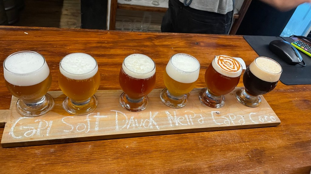 We located Capi Bar, a (the only) busy bar with a good live band, good food and people watching. Although lots of people seemed to enjoy watching us, given ET ordered the ‘tablet of beer’ to himself. For most people it was like a sharing platter, for ET is was a tasting platter. He didn’t even drink them in order which was very annoying!